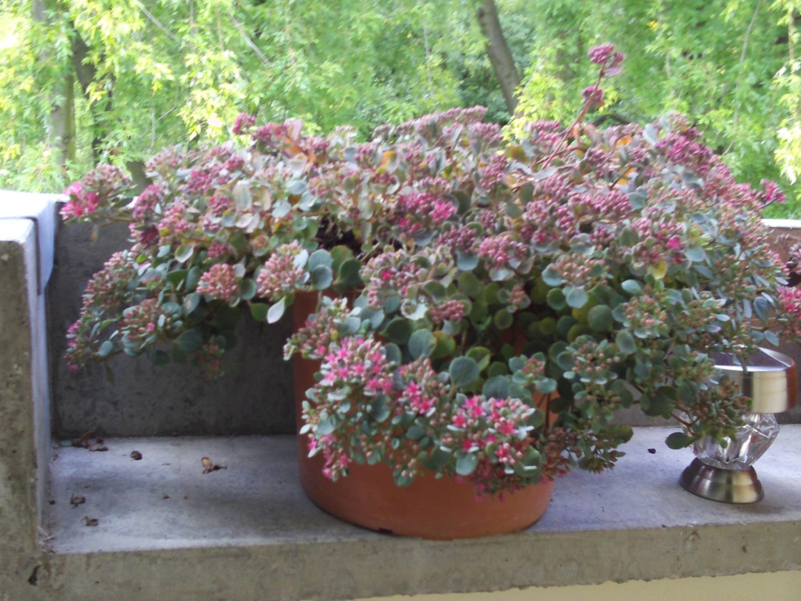 | So sieht unsere Balkongestaltung zur Zeit aus. Die Sedum-Arten werden ihre Farben in den nächsten Wochen noch intensivieren und bald fallen die Blätter der Bäume. So gibt es immer wieder Veränderungen. Auf dem Fußboden steht Sedum spectabile im Balkonkasten. Es ist das Sedum, welches schon einen Winter dort überstanden hat. Nun ist natürlich die Frage: Werden die anderen Sedum Arten (Fetthenne) |